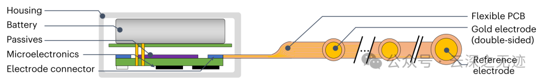 接下来看看详细的设计,由一个电子模块和灵活的测量电极组成。