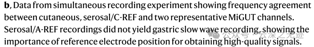 MiGUT 可以实现与利用外部参考电极的手术放置浆膜电极相当的记录结果,支持了以前的文献,表明粘膜记录是获取胃慢波的可行策略 。