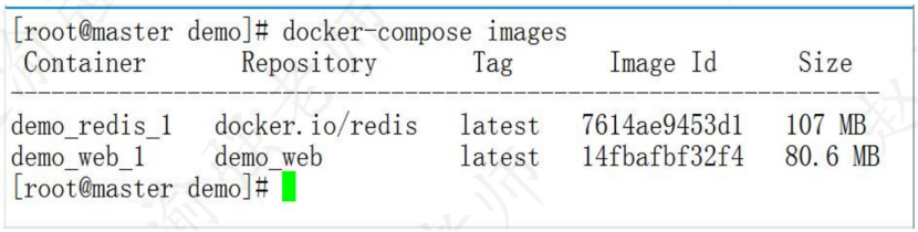 (5)执行"docker-compose images"命令可以查看由Docker Compose管理的镜像信息,如下图所示。
