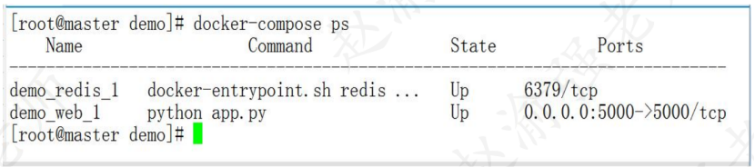 从图中可以看出在该应用程序包含了两个模块,即"demo_redis_1"和"demo_web_1"。并且这两个模块各自运行在一个Docker的容器中。