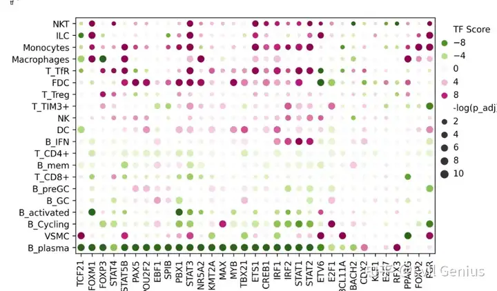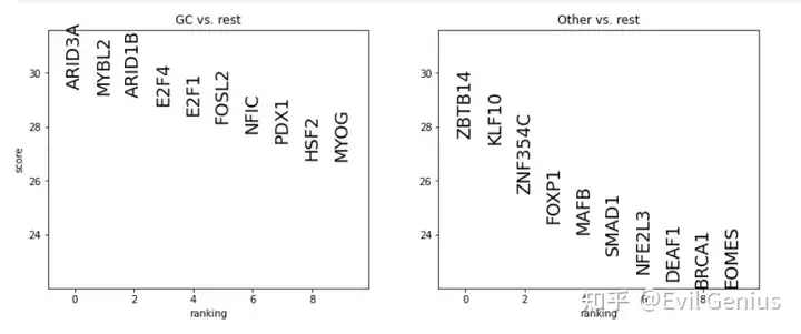 adata_coup.layers['scaled'] = np.sqrt(adata_coup.to_df())####We rank TFs and genes for germinal centers and nongerminal centers.