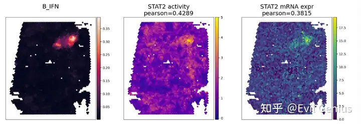 plot_spatial_ct_tf(ct = "B_IFN", tf = "STAT2")