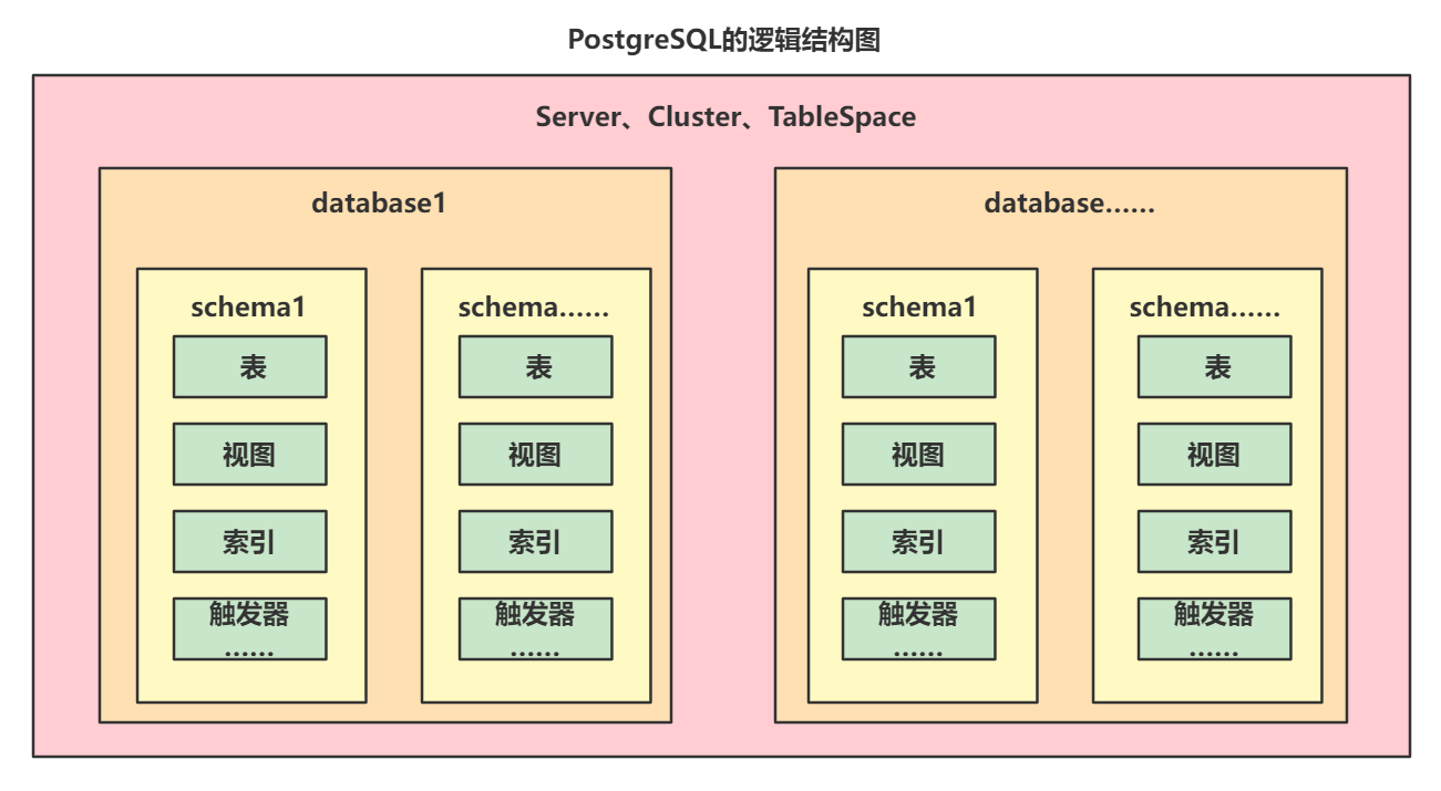 权限操作前,要先掌握一下PGSQL的逻辑结构。