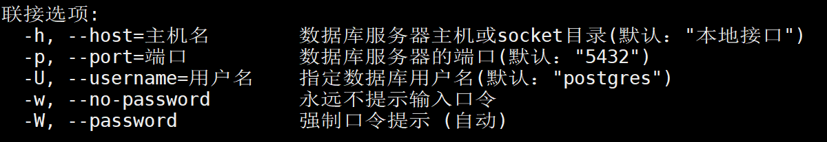 可以输入psql --help,查看psql的命令 可以直接进入到命令行的原因,是psql默认情况下,就是以postgres用户去连接本地的pgsql,所以可以直接进入。 下面的图是默认的连接方式