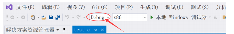 首先是环境的准备,需要⼀个支持调试的开发环境,使用VS,应该把VS上设置为Debug,如图: