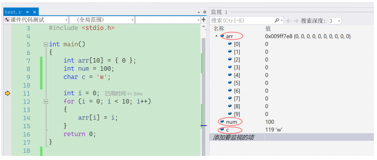 在调试的过程中我们,观察代码执行过程中,可以用监视窗口和内存窗口观察变量的变化。