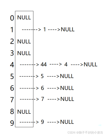 所谓的拉链,就是用一个链条拉起来,和普通的哈希数组不同,拉链法的哈希数组是一个指针数组,每个元素存的是一个节点的指针