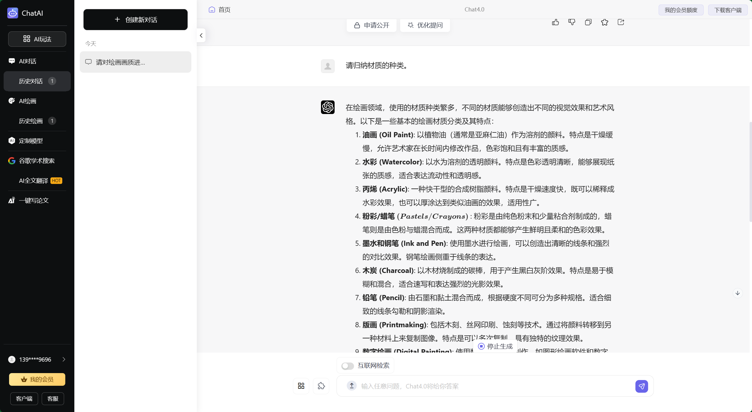 在绘画领域,使用的材质种类繁多,不同的材质能够创造出不同的视觉效果和艺术风格。以下是一些基本的绘画材质分类及其特点: