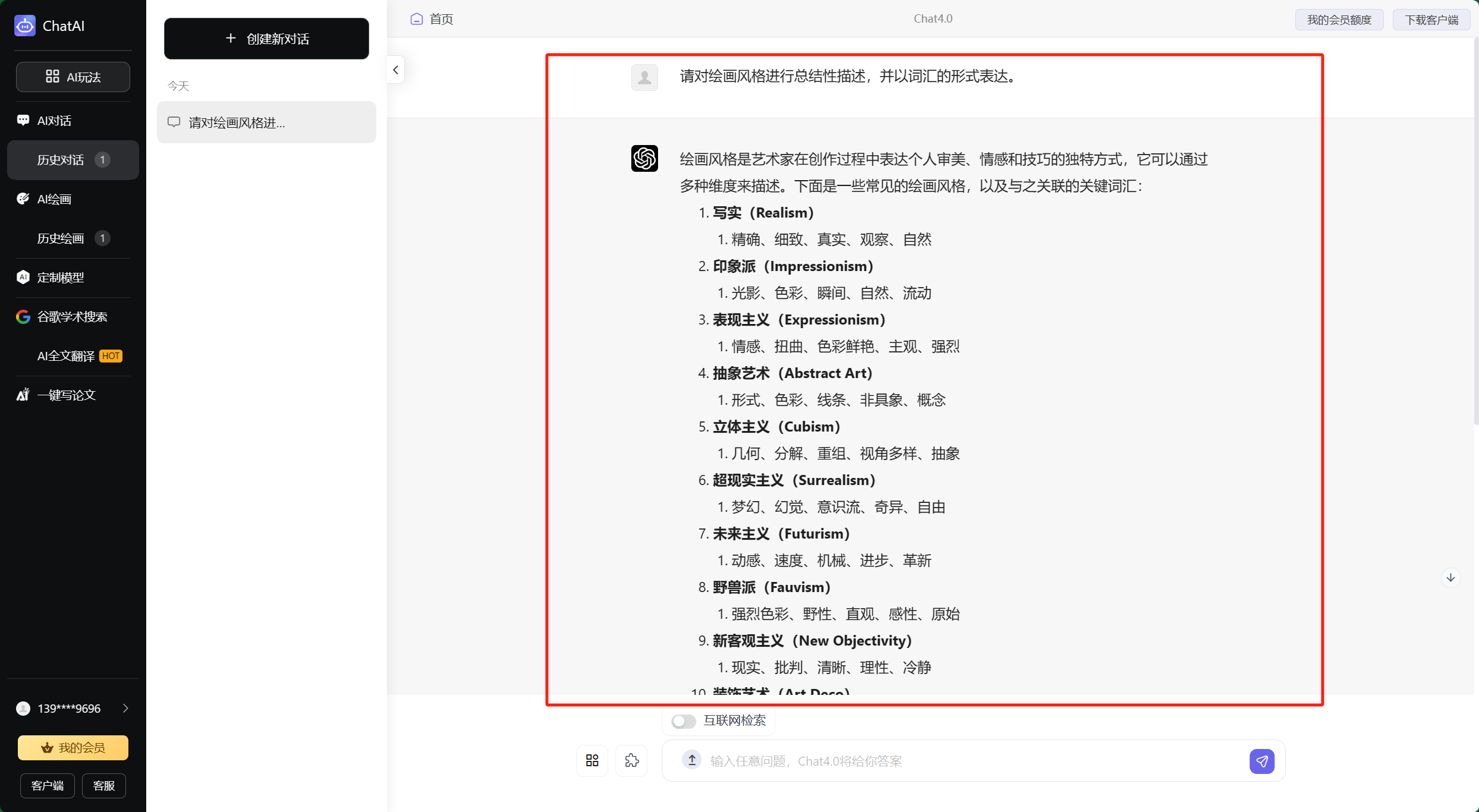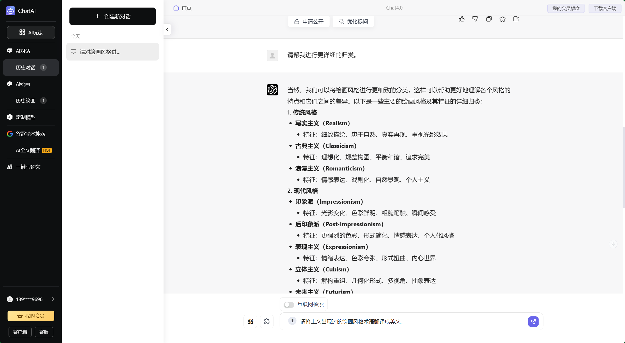 为了充分展示ChatGPT在AI绘画中生成风格类关键词的作用,下面展示部分操作流程。