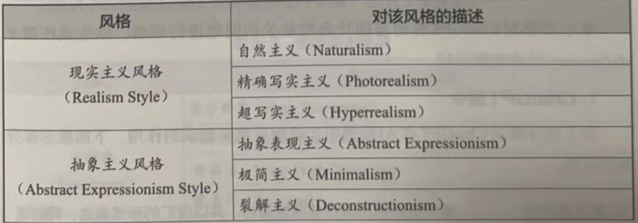 这些风格覆盖了从古典到现代,从西方到东方的广泛艺术形式。每个风格都有其独特的美学标准和创作技巧,反映了不同时期和文化背景下艺术家的视角和思考。