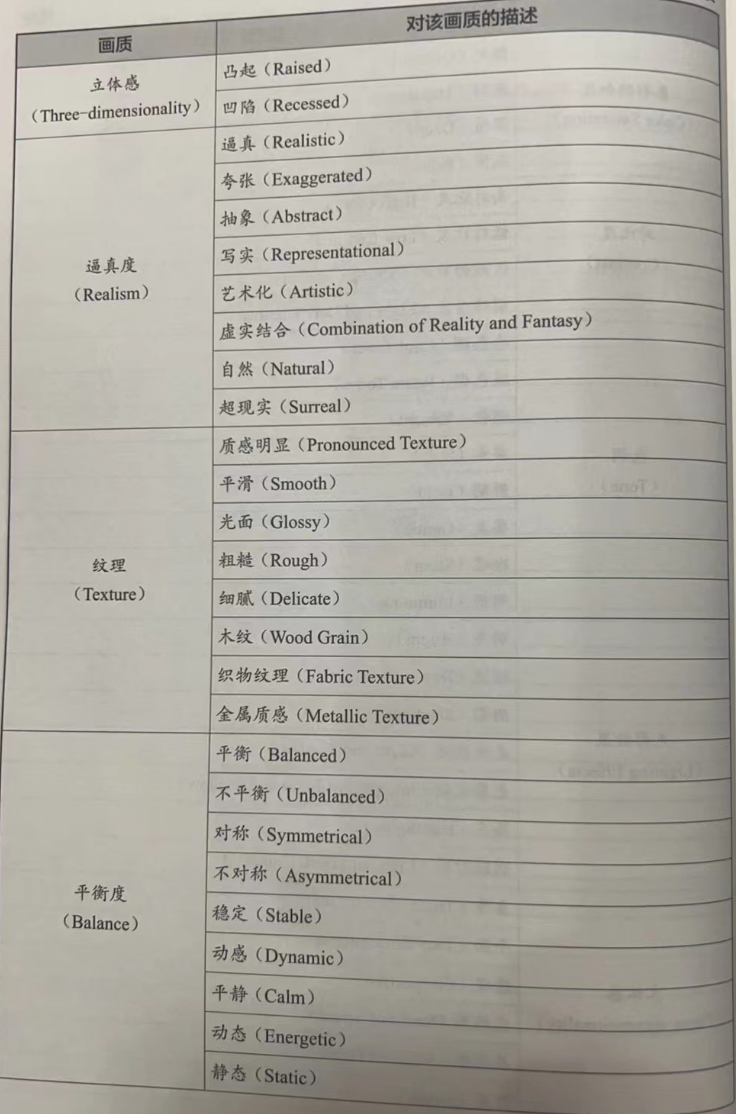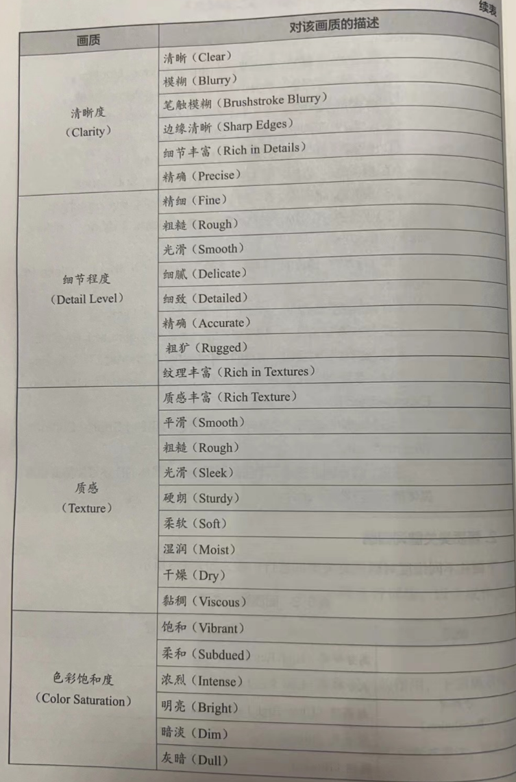 这些词汇有助于全面而具体地描述一幅画的画质。