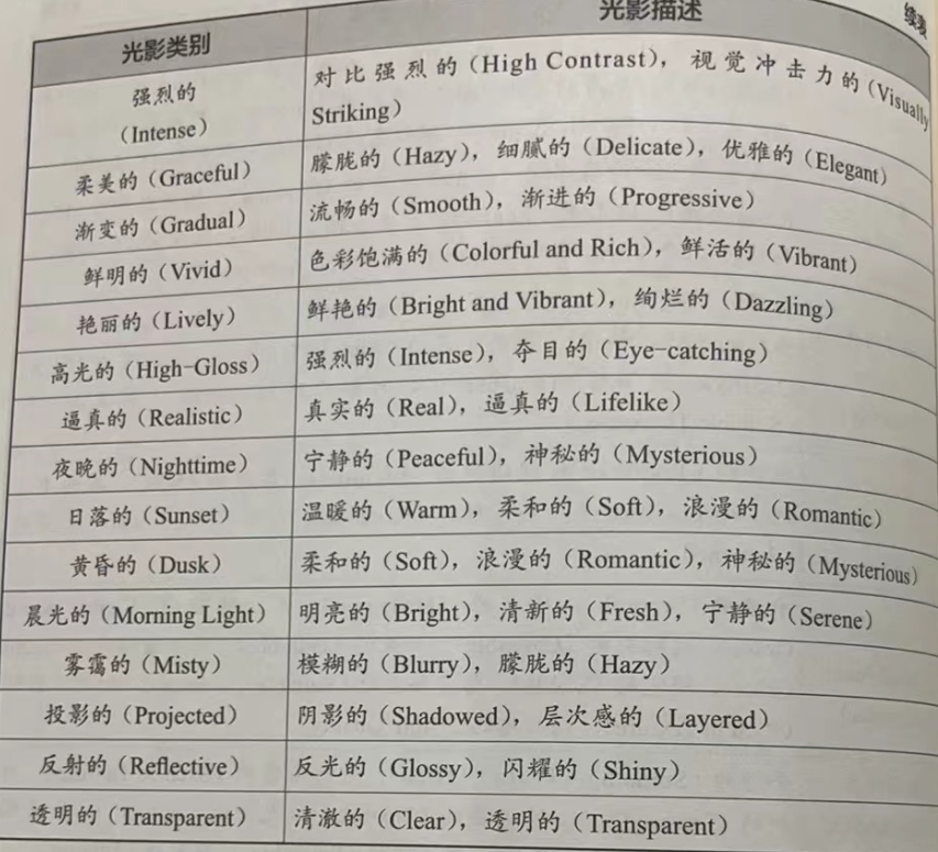 提示词:请将上文出现过的绘画风格术语翻译成英文。