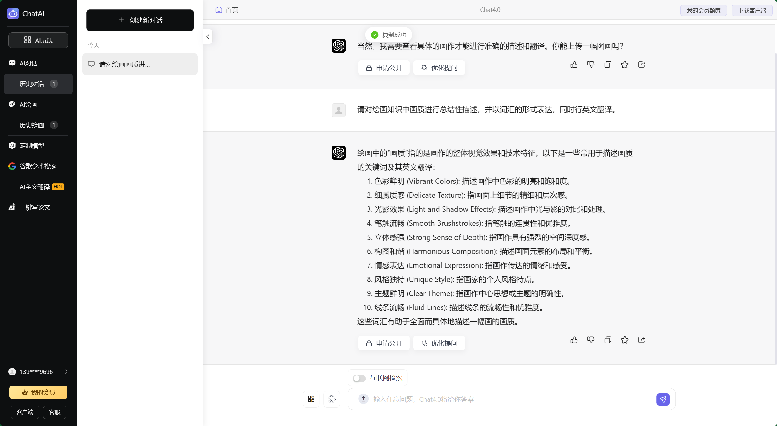 为了充分展示ChatGPT在AI绘画中生成画质类关键词的作用,下面展示部操作流程。