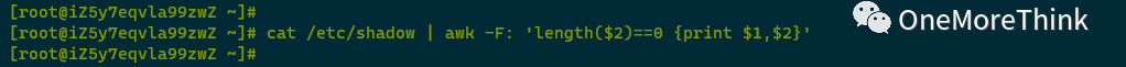 使用cat /etc/shadow | awk -F: 'length(2)==0 {print 1,