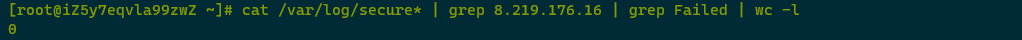 使用cat /var/log/secure* | grep 8.219.176.16 | grep Failed | wc -l命令,发现恶意IP地址8.219.176.16没有一次登录失败。