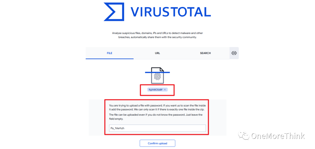同时上传密码文件/tmp/.opass,并上传恶意程序/tmp/RgX48OS6BF(VirusTotal提示需要密码打开)。