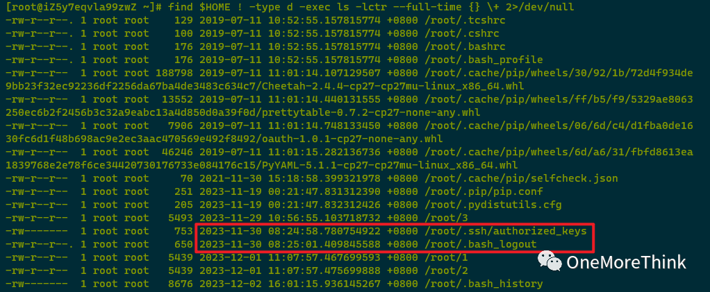 使用find $HOME ! -type d -exec ls -lctr --full-time {} \+ 2>/dev/null命令排查家目录,未发现新的异常文件。