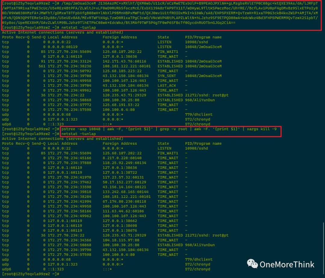 一天后,重置SSH密码时重启了服务器,恶意进程结束后不再重启。