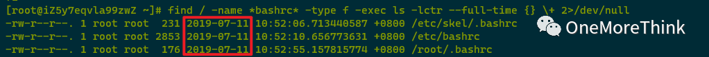 使用find / -name *bashrc* -type f -exec ls -lctr --full-time {} \+ 2>/dev/null命令排查命令别名,发现ctime都是2019-07-11的,未发现异常。