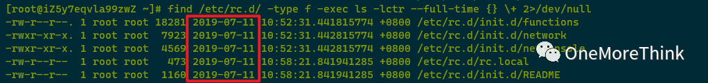 使用find /etc/rc.d/ -type f -exec ls -lctr --full-time {} \+ 2>/dev/null命令排查启动项,发现ctime都是2019-07-11的,未发现异常。