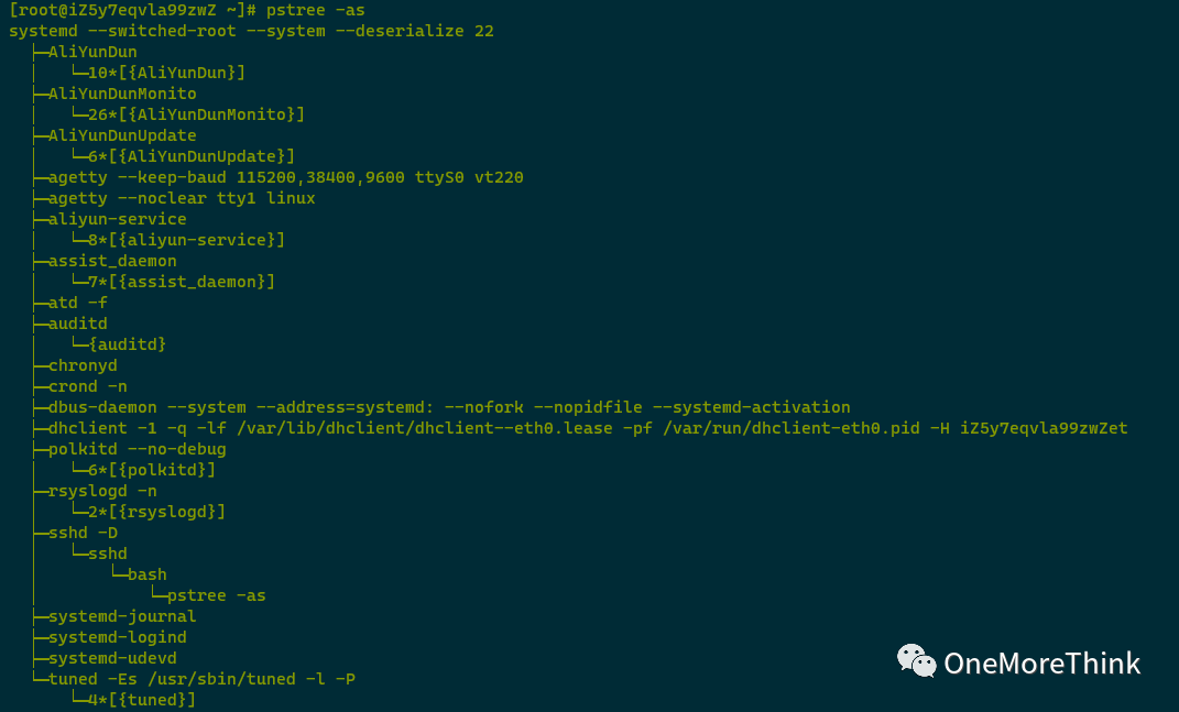 使用pstree -as命令查看所有进程的名称和启动进程的命令CMD,并未发现异常进程,没有预期的名称是随机字符或与系统进程相似的进程存在。