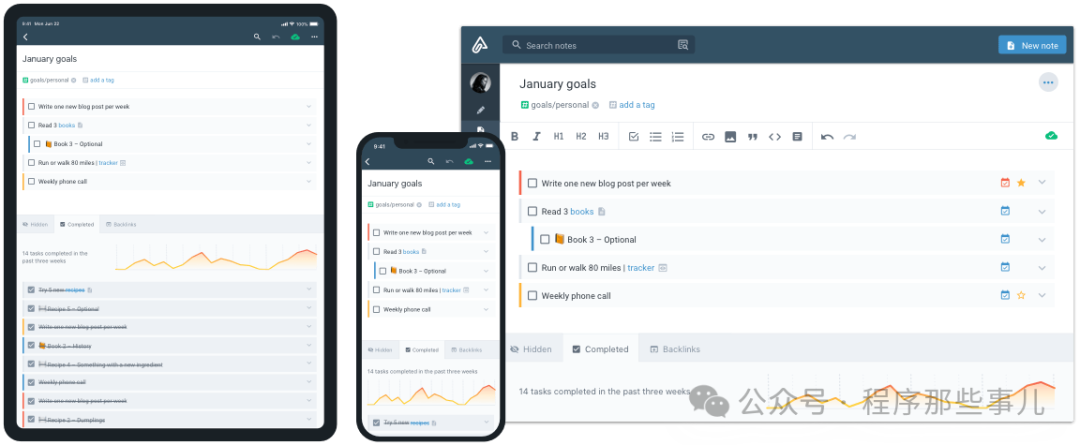 Amplenote 的议程视图功能,使用户能够根据任务的开始日期进行分组,形成一个清晰的任务列表。这一功能不仅提高了任务管理的效率,也使得日常规划变得更加直观和有序。