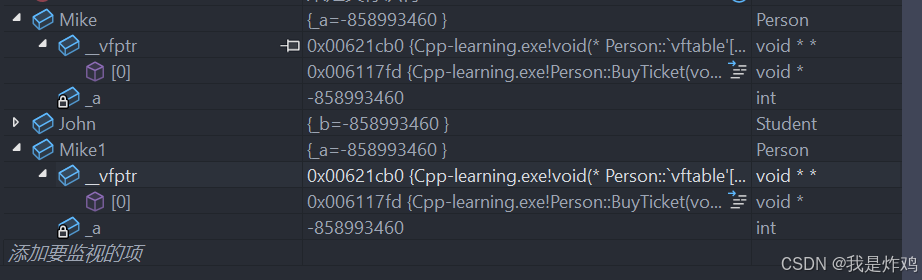 可以看到虚表指针都是一样的,并且我们对Mike取地址后: