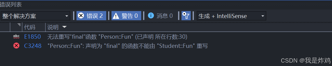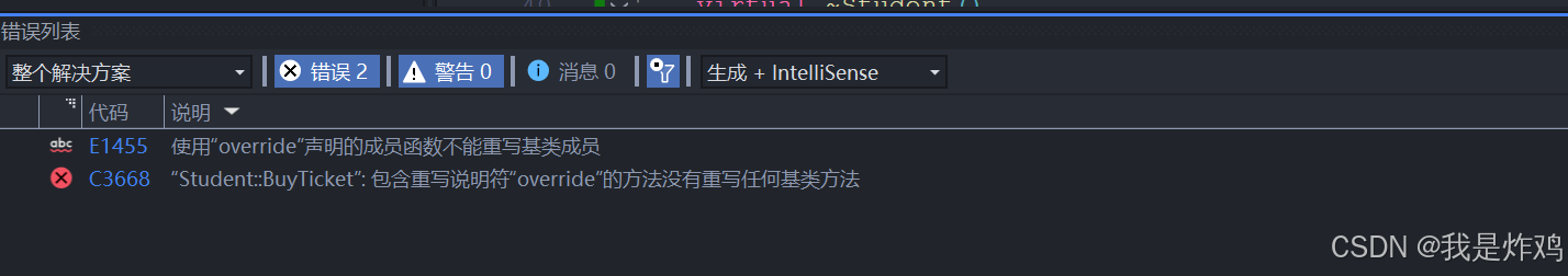 override是用来判断虚函数是否进行了重写的,没有重写就直接报错,如下: