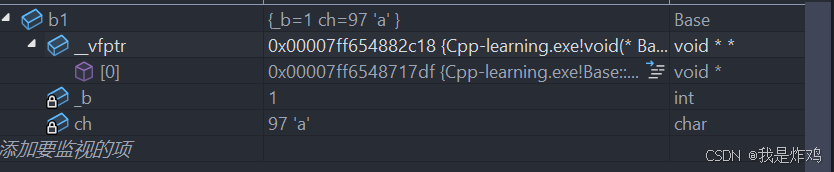 _vfptr就是虚函数表指针,这是在监视窗口看得到的。