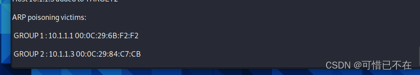 观察到10.1.1.2(KALI)伪装的MAC地址和10.1.1.3的(服务器)一模一样