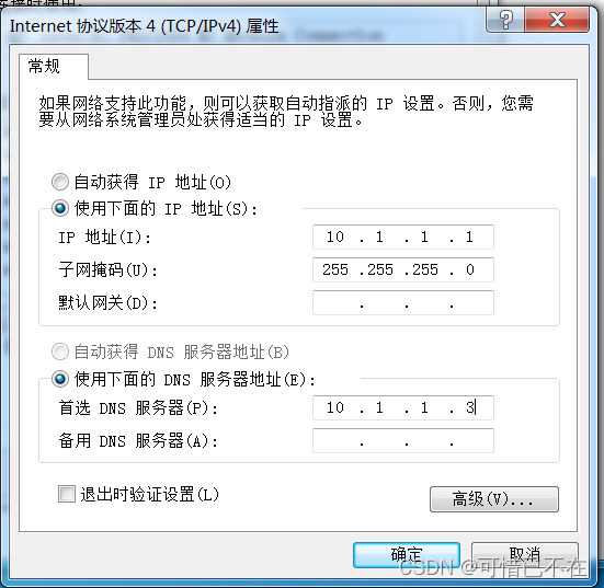 windows 7 | ip地址:10.1.1.1/24 | DNS:10.1.1.3 |