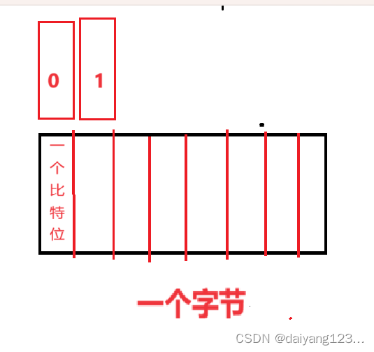 每个单位内存(一个字节),相当于一个宿舍,一个字节中住了八个比特位,比特位中存取这0或者1。