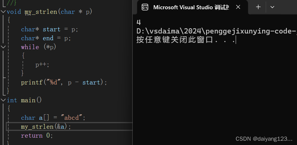 我们知道strlen是计算一个字符串的长度,那我们如何用指针-指针的方式写出一个自己的strlen呢? 代码如下