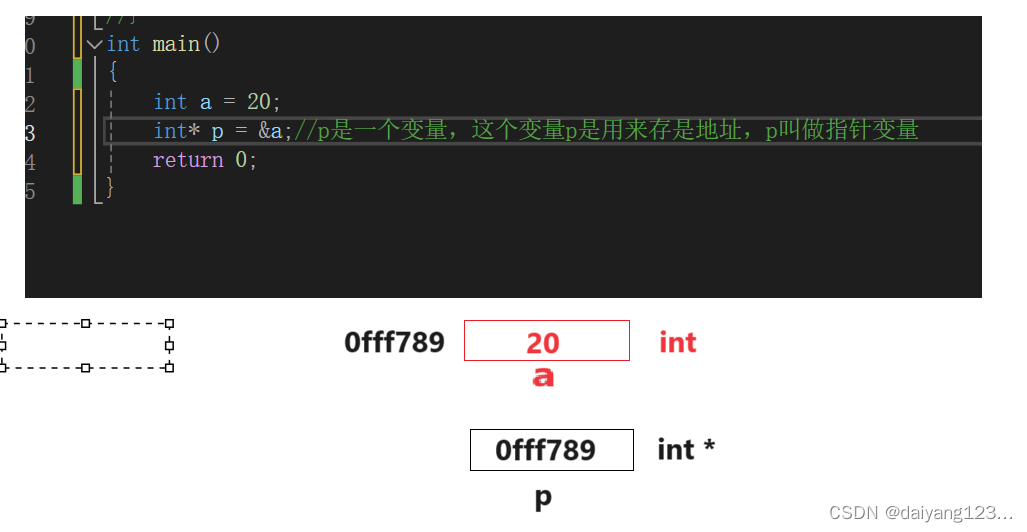 int main() { int a = 20; int* p = &a;//p是一个变量,这个变量p是用来存是地址,p叫做指针变量 return 0; }