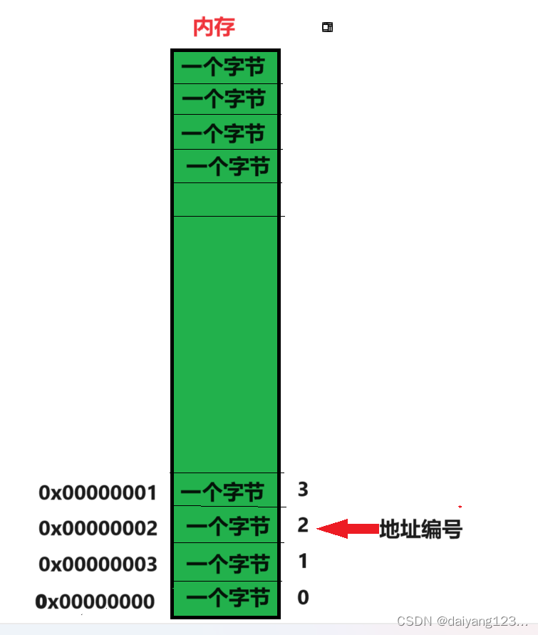在讲内存和地址之前,我们想一个生活中的案例: 假设你要去你朋友的小区找你的朋友家中做客,但是你朋友忘记告诉你他家的门牌号,这样你就要一家一家去找,这样效率就很低下,如过这时候你打电话问你的朋友,你朋友告诉了具体的门牌号,这样你就很快精准的找到了他家。 如果我们把上面的例子对照到计算机中,又是怎么样的呢? 我们知道计算机上的CPU(中央处理器)处理数据时候,需要的数据是从内存中读取的,然后处理完后又放入回内存中,我们日常买电脑时候,会发现电脑上的内存是8GB/16GB/32GB等,那么这些内存空间如何高效的管理呢? 答案:其实也是把内存化为一个个的内存单元,每个内存单元的大小取1个字节。