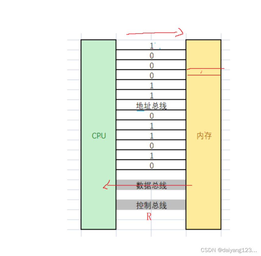 首先,必须理解,计算机内是有很多硬件单元,而硬件单元是要互相协同工作的。所谓的协同,至少相互之间能够进行数据传递。 但是硬件与硬件之间是相互独立的,那么如何通信呢?答案很简单:通过“线”连接起来。 而CPU和内存之间也有大量的数据交换,所以两者也是用线连接起来的。 不过我们只关心一组线 ,地址总线。硬件编址也是如此,简单理解,32位(64位)的机器有32根(64根)地址总线,每根线只有两态,表示1或者0(电脉冲有无),那么一根线可以表示2种含义,2根线就能表示4种含义,依此类推32根线可以表示2^32中含义,每一种含义代表一个地址。 地址信息被下达给内存,在内存上,就可以找到该地址对应的数据,将数据在通过数据总线传入CPU内寄存器。