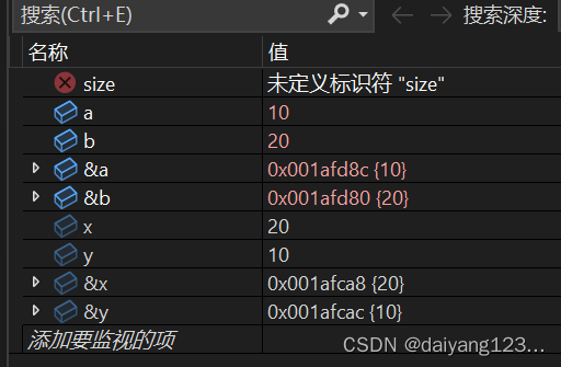 我们发现在上述代码里面,a和b的值没有发生交换,这是为什么呢? 我们调试一下看看。