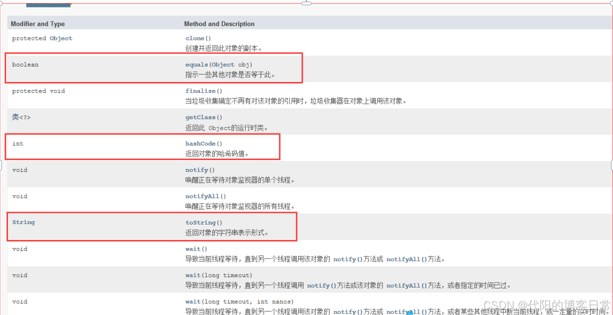 // Student@4554617c所以在开发之中,Object类是参数的最高统一类型。但是Object类也存在有定义好的一些方法。如下