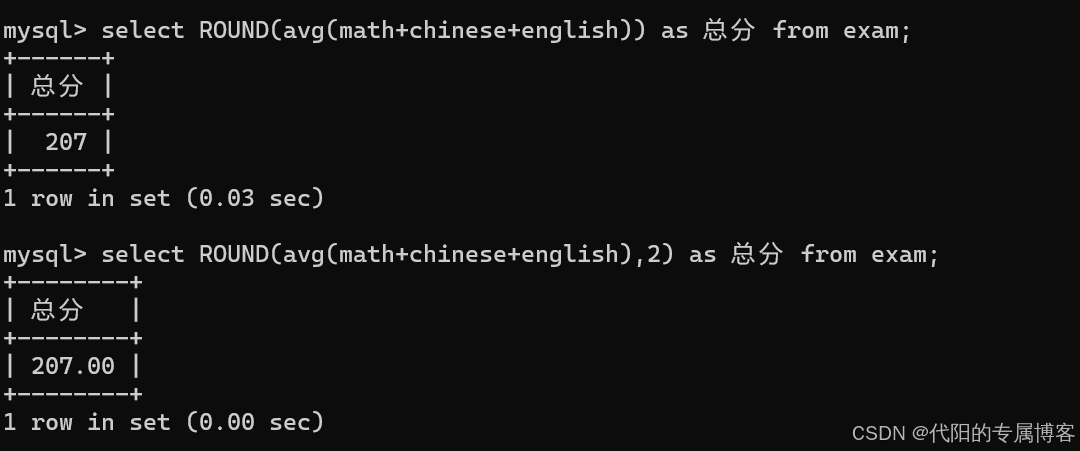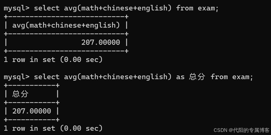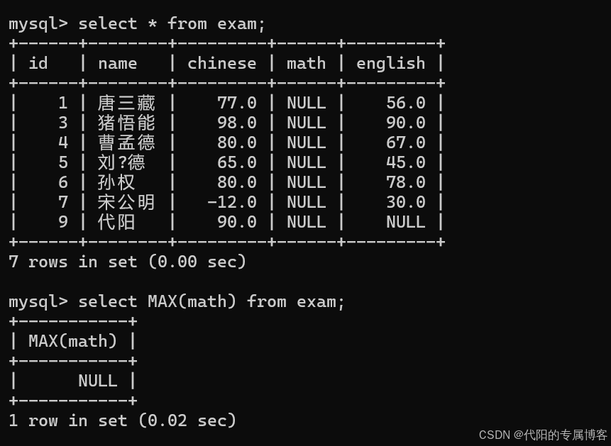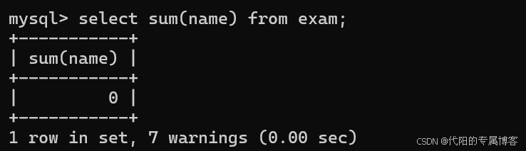 注意一下啊:所求得和会忽略列值为NULL的值 不能统计非数值的列