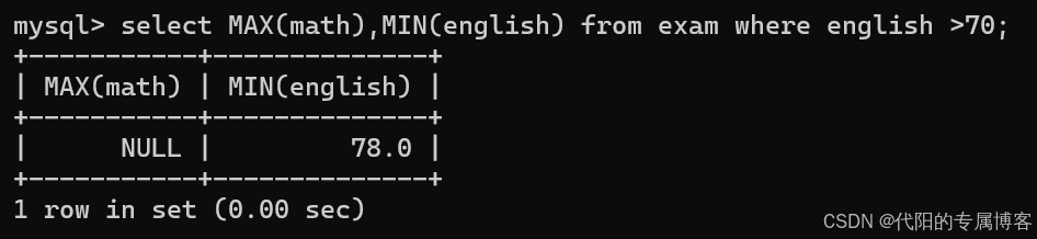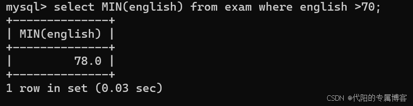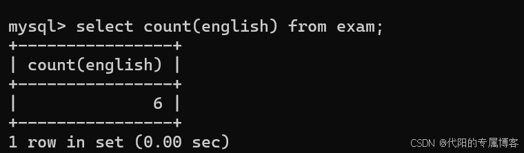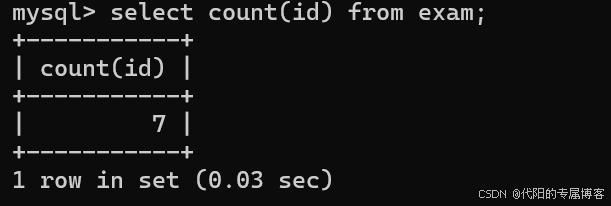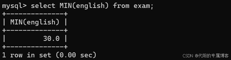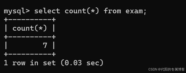 MIN([DISTINCT] expr) 返回查询到的数据的 最⼩值,不是数字没有意义• 统计exam表中有多少记录** 原表
