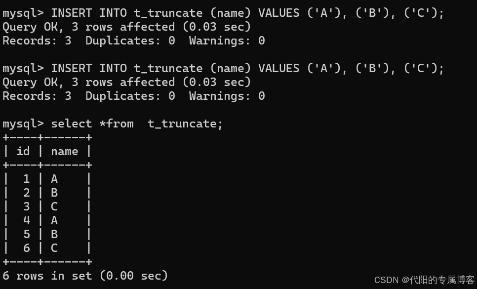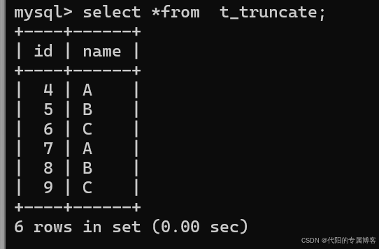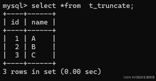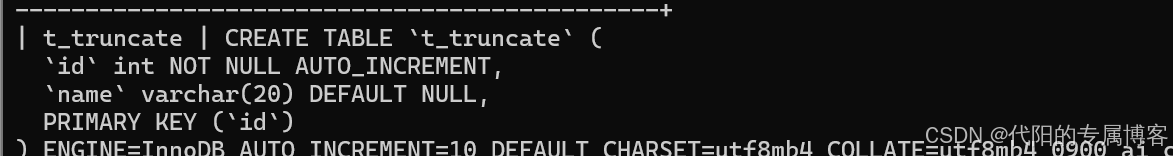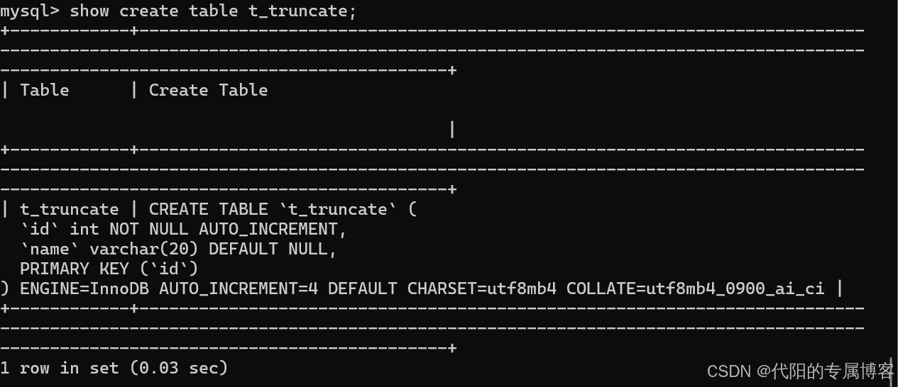 1 TRUNCATE [TABLE] tbl_name创建一个表