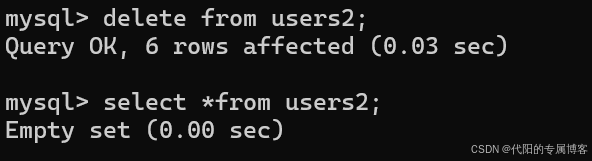 删除:delete from 表名insert ,update ,delete 执行成功返回的是受影响的行数(整数) select 执行成功之后返回的是一个结果集(集合)