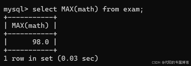 MAX([DISTINCT] expr) 返回查询到的数据的 最⼤值,不是数字没有意义