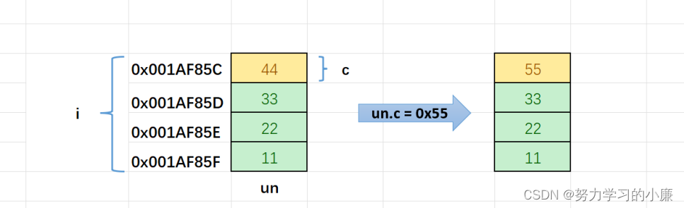 可以看到,对un.i un.c和un取地址的结果都是一样的。