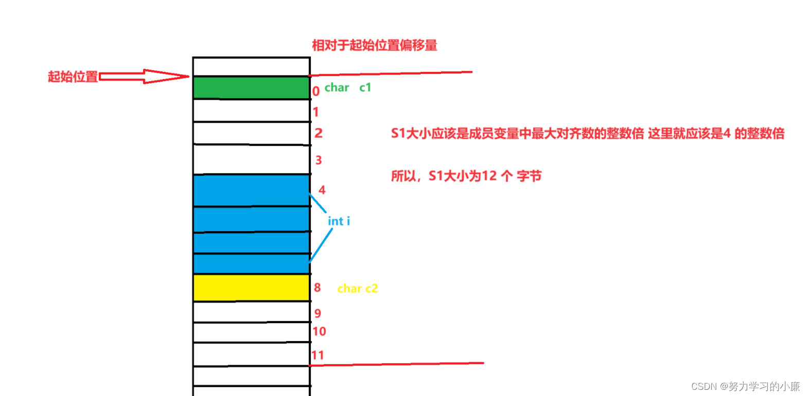 这里结构体大小是12,如何计算的呢?这里分析一下