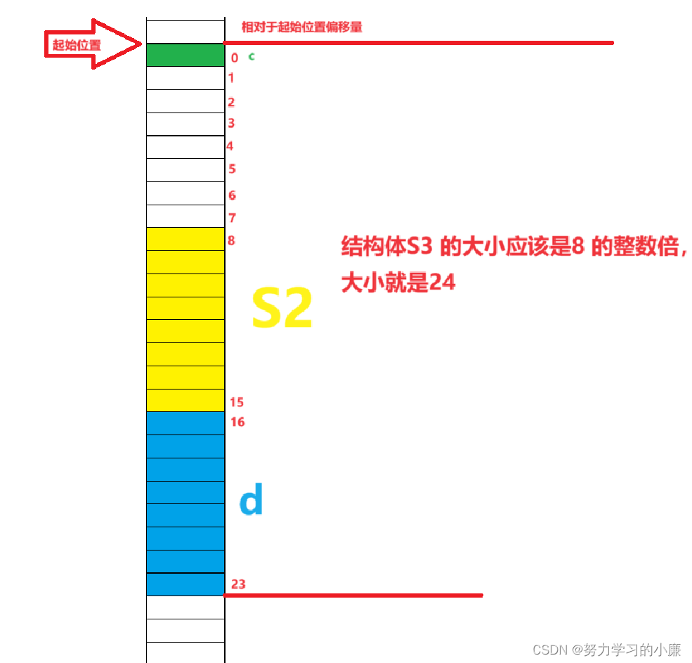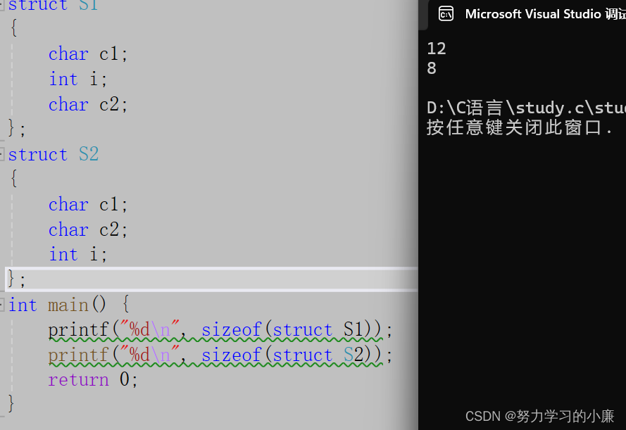 我们可以看到,这两个结构体大小不一样,我们来分析一下S2结构体的大小: