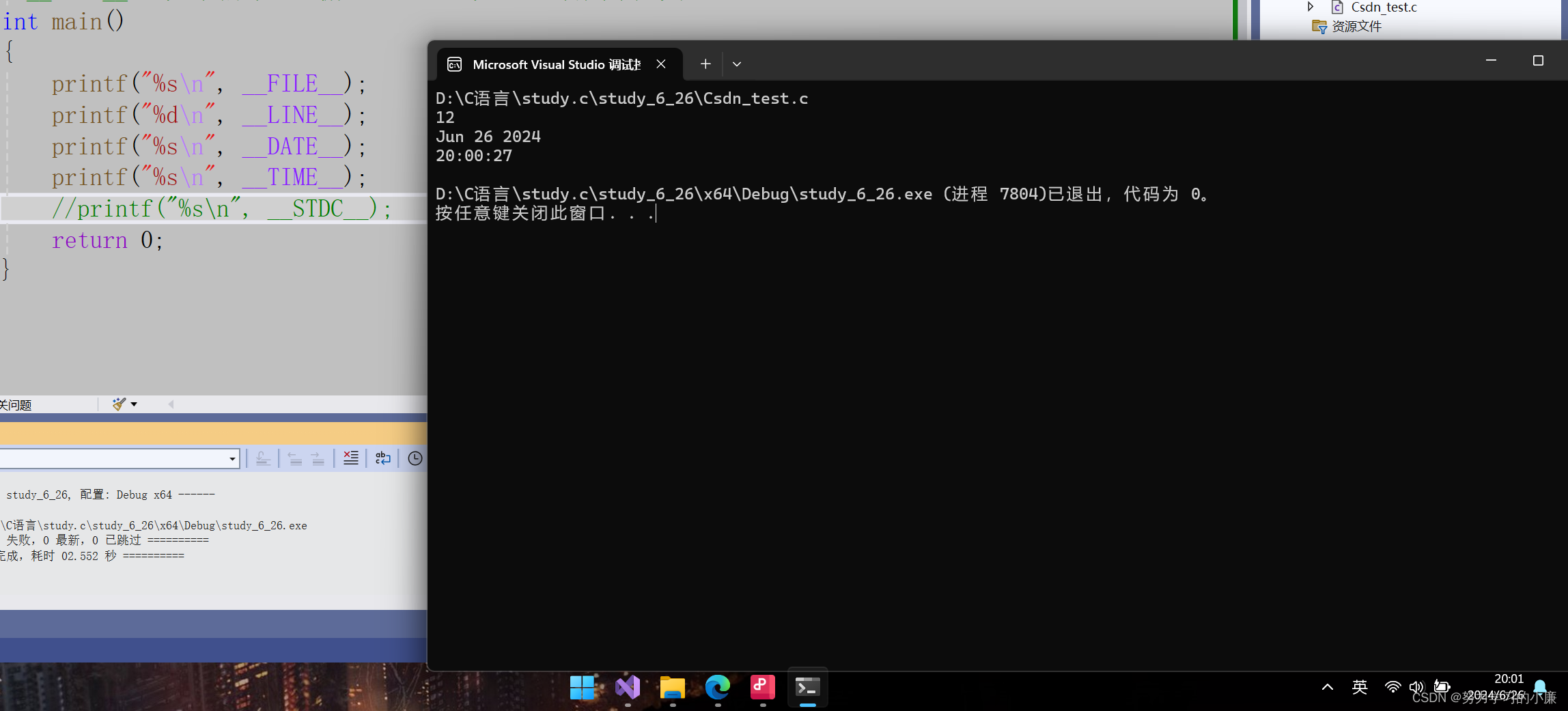 C语言设置了一些预定义符号,可以直接使用,预定义符号也是在预处理期间处理的。