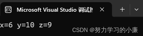 printf("x=%d y=%d z=%d\n", x, y, z);//输出的结果是什么?