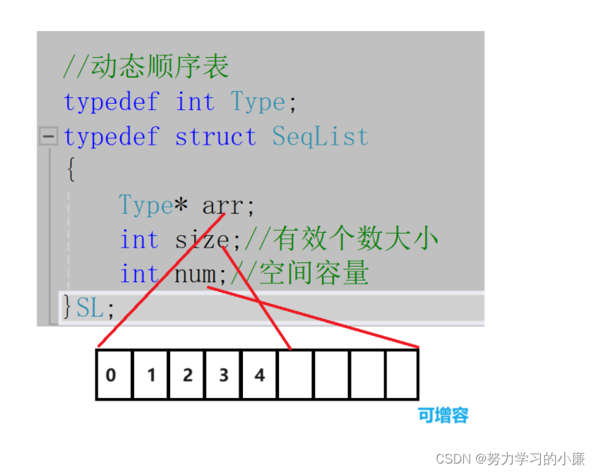 静态顺序表是定长数组,而动态顺序表是可增容的,不会浪费空间也不会出现空间不够的场景,这里来实现动态顺序表存储整形数据: