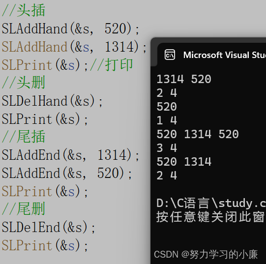 int SLFind(SL* p, Type f);要存储一些数据,顺序表具备以上功能(对于整型)